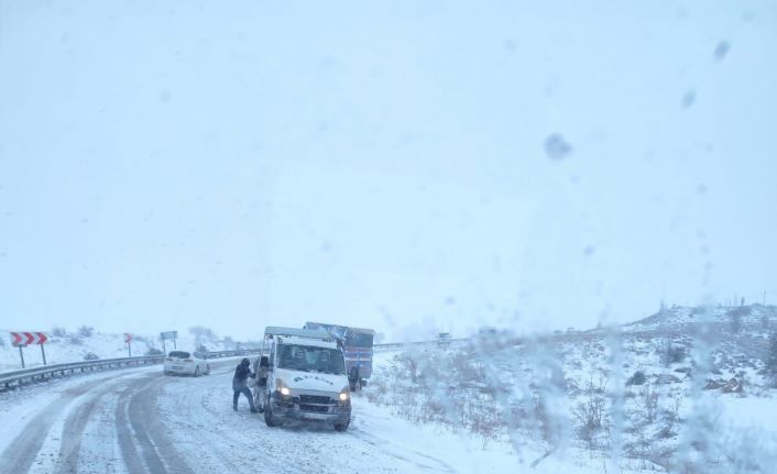 Kayseri-Pınarbaşı yolu kar nedeniyle araç trafiğine kapatılırken, yolda cok sayıda kaza meydana geldi.