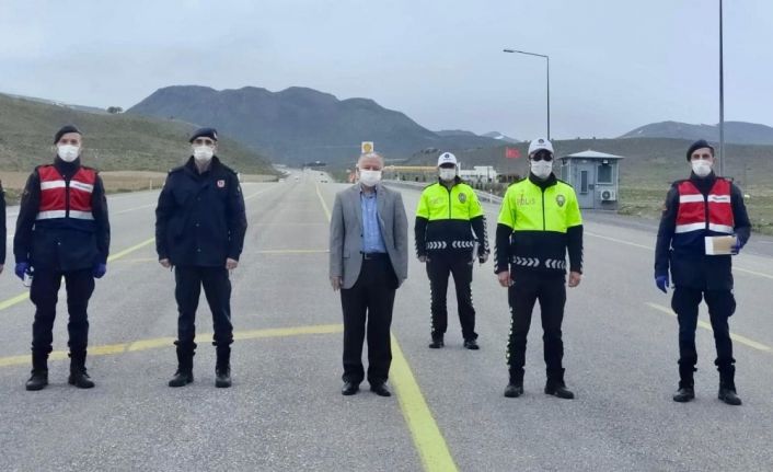 Develi Kaymakamı Murat Duru, ilçe girişindeki jandarma ve polis uygulama noktasında görev yapan güvenlik güçlerini ziyaret etti. Kaymakam Duru, uygulamada sürücülere de uyarılarda bulunarak, "Trafik kuralları aklımızda olmakla birlikte gelecek güzel günler için evde kalmaya devam edelim" dedi.