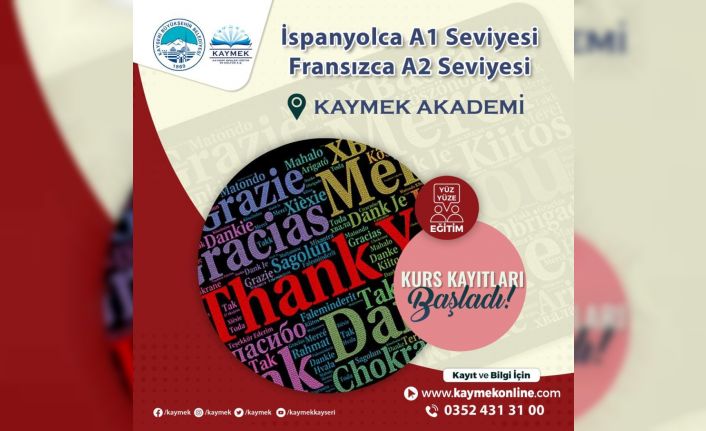 Kayseri Büyükşehir Belediyesi bünyesinde faaliyet gösteren Kayseri Mesleki Eğitim ve Kültür A.Ş. (KAYMEK), yabancı dil öğretmek ve kaliteli bir eğitim sunmak amacıyla İspanyolca ve Fransızca dersleri verecek. Buna göre KAYMEK Akademi’de yabancı dil öğrenmek isteyenler için yabancı dil kurs kayıtları başladı.