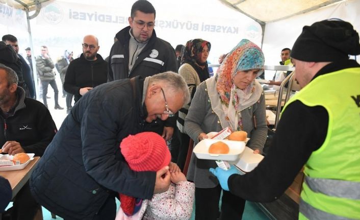 Deprem bölgesinde çalışmaları titizlikle takip eden Başkan Büyükkılıç da konteyner kentte hem depremzede vatandaşlara hem de görevli personele sıcak yemek dağıtımına eşlik etti. Özellikle çocuklarla yakından ilgilenen Büyükkılıç, depremzede vatandaşlara bir kez daha ‘geçmiş olsun’ dileklerinde bulundu.