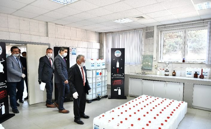 Kayseri Büyükşehir Belediyesi, korona virüs ile mücadele sürecinde yoğun bir şekilde kullanılan maske ve dezenfektan ihtiyacını kendi imkanları ile gideriyor. Başta sağlık çalışanları olmak üzere emniyet mensupları ve ilçe belediyeleri ile kamu kurum ve kuruluşlarının ihtiyaçlarını karşılamak üzere KAYMEK bünyesinde maske üretimi yapan Büyükşehir Belediyesi, KASKİ Genel Müdürlüğü’nün laboratuvarında da dezenfektan üretiyor. Büyükşehir Belediye Başkanı Dr. Memduh Büyükkılıç, el dezenfektanının üretildiği KASKİ Genel Müdürlüğü laboratuvarında incelemelerde bulundu. KASKİ Genel Müdürü Özgür Özdemir’den dezenfektan üretimine ilişkin bilgiler alan Başkan Memduh Büyükkılıç, şehrin insan yoğun bölgeleri ile hastane girişlerine konacak olan dezenfekte ünitelerini de inceledi.