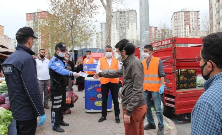 Kayseri Emniyeti ve Talas Belediyesi Pazar Yerinde Maske Dağıttı