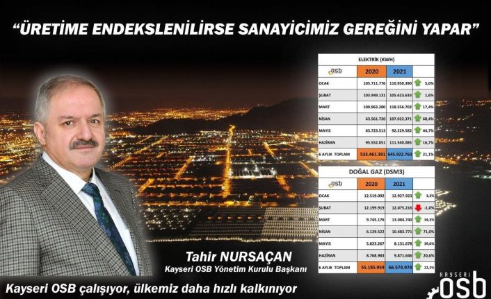 Kayseri OSB Başkanı Nursaçan, Haziran ayı doğal gaz ve elektrik tüketim rakamlarını paylaştı pandemi koşullarından kademeli olarak normale geçişin rakamlara da yansıdığını belirtti.