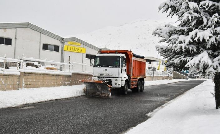 Yoğun kar yağışıyla birlikte çalışmalara başlayan Kayseri Organize Sanayi Bölge Müdürlüğü, Fen İşleri Müdürlüğü gece boyunca tuzlama ve kar temizleme çalışmaları yaptı. OSB içerisindeki 150 kilometrelik yol ağında 5 adet kar küreme ve tuz serici kamyon, 1 adet yükleyici kepçe, 4 adet kazıcı ve yükleyici kepçe, 4 adet personel taşıma olmak üzere toplam 14 adet araç ve 18 kişilik ekiple 24 saat esaslı çalışıldı.