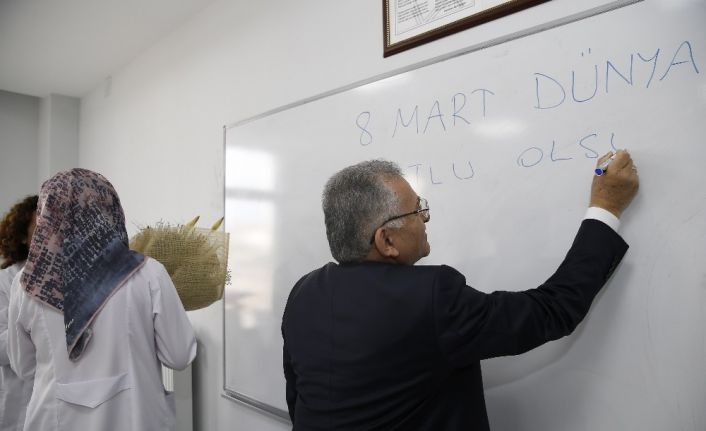Büyükşehir Belediye Başkanı Memduh Büyükkılıç, Beyazşehir Sosyal Yaşam Merkezi’nde KAYMEK tarafından yetişkinler için açılan kursları da ziyaret etti. Bu sırada kadın öğretmenler ve çalışanların 8 Mart Dünya Kadınlar Günü’nü kutlayan Başkan Büyükkılıç, derslikteki tahtaya "8 Mart Dünya Kadınlar Günü kutlu olsun" yazdı.