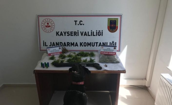 Edinilen bilgiye göre İl Jandarma Komutanlığınca yürütülen asayiş faaliyetleri kapsamında; Tomarza İlçesinde R.Ç.’nin evinde yapılan aramada 100 gram kubar esrar, 20 kök kenevir, 1 adet uyuşturucu kullanım aparatı ve 1 adet ruhsatsız av tüfeği ele geçirildi. Olayla ilgili R.Ç. gözaltına alındı.