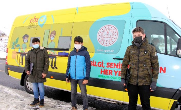 Milli Eğitim Bakanlığı tarafından Kayseri’ye gönderilen 3 Eğitim Bilişim Ağı (EBA) aracı uzaktan eğitim sürecinde çocukların sınıfı oldu.