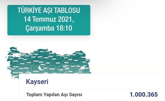 Sağlık Bakanlığı tarafından açıklanan verilere göre, Kayseri’de koronavirüs aşılama sayısı 1 milyonu geçti.