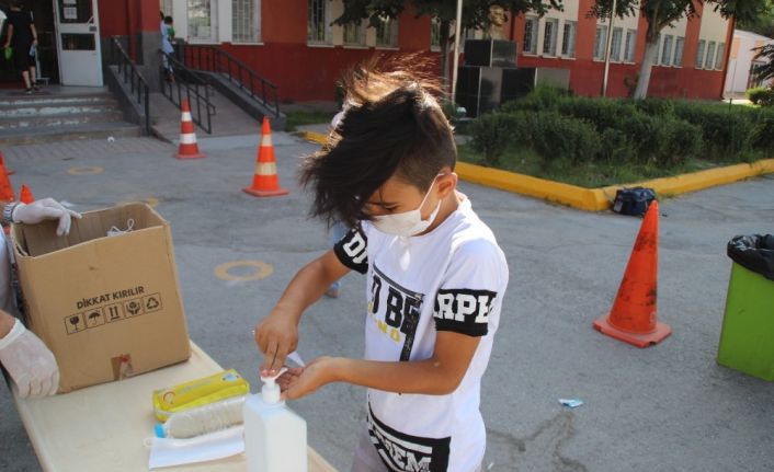 Kayseri’de öğrenciler, bursluluk sınavına koronavirüs tedbirleri kapsamında girdi.