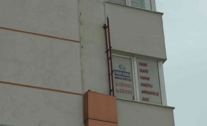 Kayseri’de etkisini gösteren şiddetli rüzgar evlerin çatılarını uçururken, bazı binaların da kaplamalarını söktü.