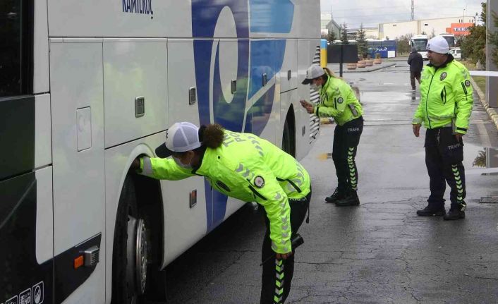 Kayseri’de yolcu otobüslerine ’kış lastiği’ denetimi