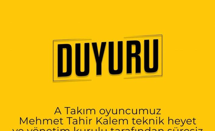 Kayserigücü Futbol Kulübü’nden yapılan açıklamada, “A Takım oyuncumuz Mehmet Tahir Kame teknik heyet ve yönetim kurulu tarafından süresiz kadro dışı bırakılmıştır” denildi.