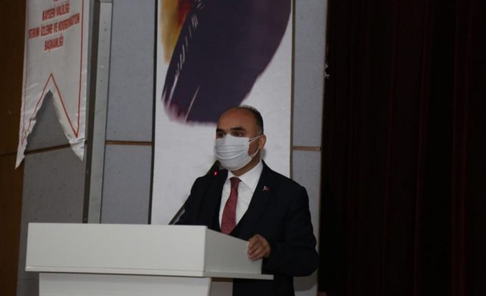 Yatırım İzleme ve Koordinasyon Başkanlığı salonunda düzenlenen eğitim programına Kayseri Valisi Günaydın’ın yanı sıra Büyükşehir Belediye Başkanı Memduh Büyükkılıç ve mahalle muhtarları ile azaları katıldı. Vali Günaydın, 2021 yılının Türkiye’de afet eğitim yılı ilan edildiğini ifade ederek, “Nüfusumuzun yüzde 60 civarındaki kesimi mutlaka bu yıl eğitime tabi tutulacaktır. İlimizde de bu oran yaklaşık 840 bin. Tabi ki bu rakamın üstüne nasıl çıkarız bunun da çalışmasını yapıyoruz. Biliyorsunuz afet gelmeden alacağımız tedbirler büyük önem arz etmektedir. Erken önlem almak ilerde afetlerde ortaya çıkacak sorunların önlenmesinde çok büyük önem arz ediyor” dedi.