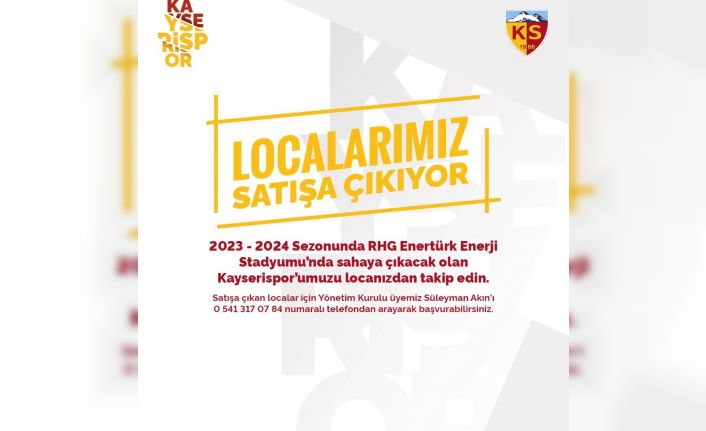 Kayserispor Kulübü’nden yapılan açıklamada, “Localarımız satışa çıkıyor 2023-2024 Sezonunda RHG Enertürk Enerji Stadyumu’nda sahaya çıkacak olan Kayserispor’umuzu locanızdan takip edin. Satışa çıkan localar için Yönetim Kurulu üyemiz Süleyman Akın’ı 0 541 317 07 84 numaralı telefondan arayarak başvurabilirsiniz” denildi.