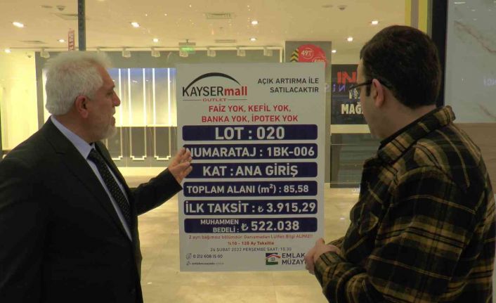 Melikgazi ilçesine bağlı İldem bölgesinde hizmet veren KAYSERmall AVM içerisinde bulunan 34 iş yeri İldem Erciyes Toplu Konut Yapı Kooperatifi’nin tasfiyesi nedeni ile 24 Şubat Perşembe günü saat 10.30’da açık arttırma ile ihaleye çıkacak. İhalede herhangi bir ön koşul aranmazken, katılacak vatandaşların bankaya TOKİ Emlak Müzayede hesabına teminat yatırması yeterli olacak. İhalede iş yeri alan vatandaşlar da yüzde 10 peşinat ve 120 ay taksitle ödemelerini gerçekleştirecek.