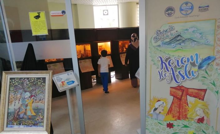 Kerem ile Aslı, 16. yüzyılda İran’da bir şahın oğlu olan Kerem ile şahın hazinedarı olan keşişin Aslı isimli kızı arasında yaşanan bir sevda öyküsü olarak biliniyor. Kerem ile Aslı Kayseri’de kavuşup, Kayseri’de yanarak kül oldukları ve iki aşığın küllerinin Erciyes’in Kayseri’ye bakan köşesine gömüldüğü rivayet ediliyor. Sergi, Kerem ile Aslı sevdasının İran’ın en önemli şehirleri olan İsfahan’dan Kayseri’ye uzanan hüzünlü yaşanmış gerçeğini aktarıyor. 3 ay gibi kısa bir zaman içerisinde hazırlanan, 18 farklı el sanatı ve 24 eserden oluşan sergide Kerem ile Aslı’nın bu masalımsı sevdasının hikâyesi 14 bölüme ayrılarak kronolojik, 3 boyutlu 14 eserle hazırlandı. Sergide Kerem ile Aslı sevdasının ayrıntılarını içeren 8 tablo ve 2 çini vazo yer alıyor. Sıfır atık projesine katkı sağlamak amacıyla yüzde 90 atık malzemelerden yapılan minyatürler, tablolar ve vazolar dikkat çekiyor.