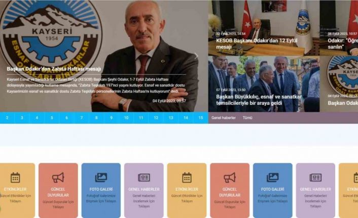Kayseri’nin en büyük sivil toplum kuruluşu olan Kayseri Esnaf ve Sanatkârlar Odaları Birliği’nin (KESOB) Başkanlığı’nı yürüten Şeyhi Odakır; çağa ayak uydurduklarını, birliğe ait kurumsal web sitesinin yenilendiğini belirterek, “Kurumumuzun dijital yüzü olan web sitemizi yeniliyor, görünümünü ve alt yapısını güçlendiriyoruz. Yeni, modern ve kullanım kolaylığıyla kesob.com esnafımızın vatandaşımızın hizmetinde olmaya devam edecek” dedi.