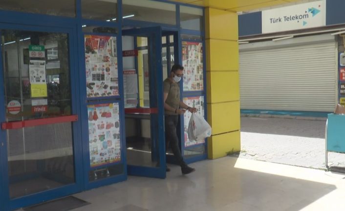Korona virüs tedbirleri kapsamında uygulanan sokağa çıkma kısıtlamasının 3. gününde, Kayserili vatandaşlar evlerine yürüme mesafesinde olan marketlere giderek alış verişlerini yaptı.