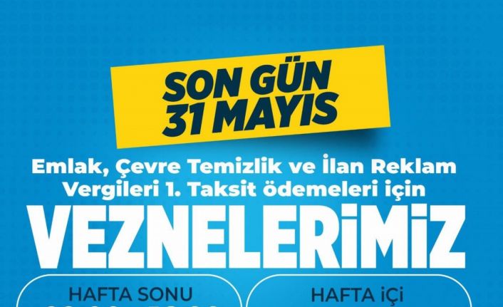 Vergi ödemelerinde her türlü ödeme kolaylığı sunan Kocasinan Belediyesi; Emlak, Çevre Temizlik ve İlan Reklam vergilerini ödemek isteyen mükellefler için hafta sonu 27 Mayıs Cumartesi ve 28 Mayıs Pazar günü saat 09:00 ile 16:00 saatleri arası, hafta içi ise 29-30-31 Mayıs Çarşamba Günü saat 08:30 ile 19:00 saatleri arası veznelerin açık olacağı duyuruldu.