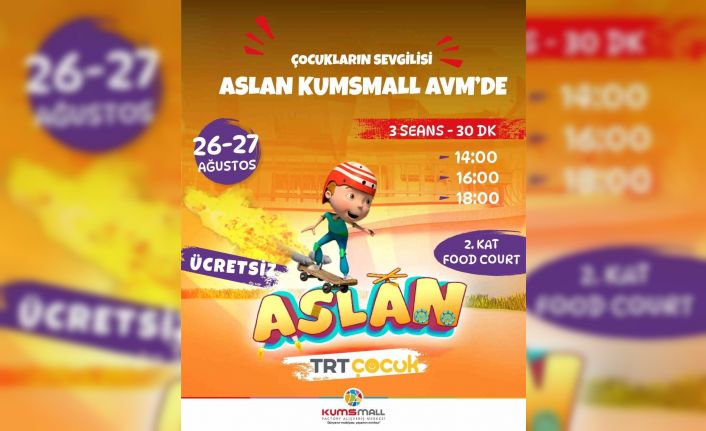 Yaz tatilindeki çocuklar için her hafta farklı etkinlikler gerçekleştiren KUMSMALL AVM, bu hafta da TRT Çocuk’un sevilen çizgi film kahramanı Aslan’ı Kayseri’ye getiriyor. Aslan ve arkadaşlarının eğlenceli gösterisi 26-27 Ağustos tarihlerinde KUMSMALL AVM’de ücretsiz olarak izlenebilecek.