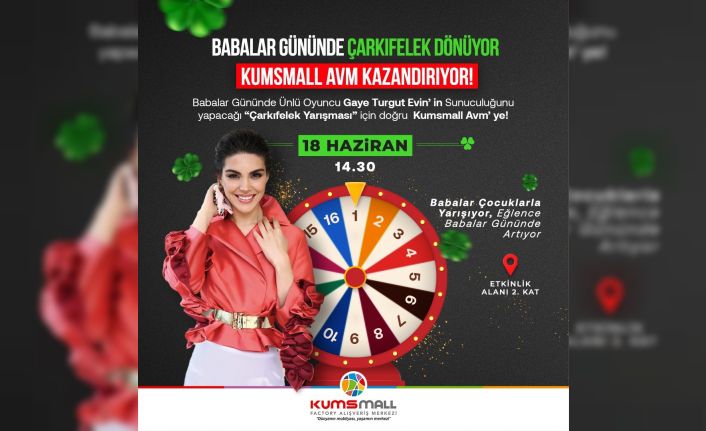 Anneler Günü’nü sarma yarışması ve bir dizi etkinlikle kutlayan Türkiye ve Avrupa’nın en büyük karma AVM’si KUMSMALL, Babalar Günü’nde de çok farklı. KUMSMALL AVM’de Babalar Günü’ne özel Çarkıfelek etkinliği gerçekleştirilecek.