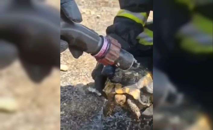 Mahsur kalan kaplumbağaları itfaiye kurtardı