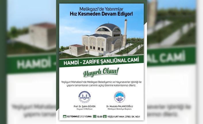 Melikgazi Belediyesi, Tınaztepe Mahallesi’nde Hayırsever Sarıalp ailesiyle birlikte yaptığı Ahmet-Selehattin Sarıalp Aile Sağlığı Merkezi ve Yeşilyurt’ta yine Melikgazi Belediyesi ve hayırsever işbirliği ile yapımı tamamlanan Hamdi-Zarife Şanlıünal Cami’nin 2 Temmuz Cuma günü açılışını yapacak.