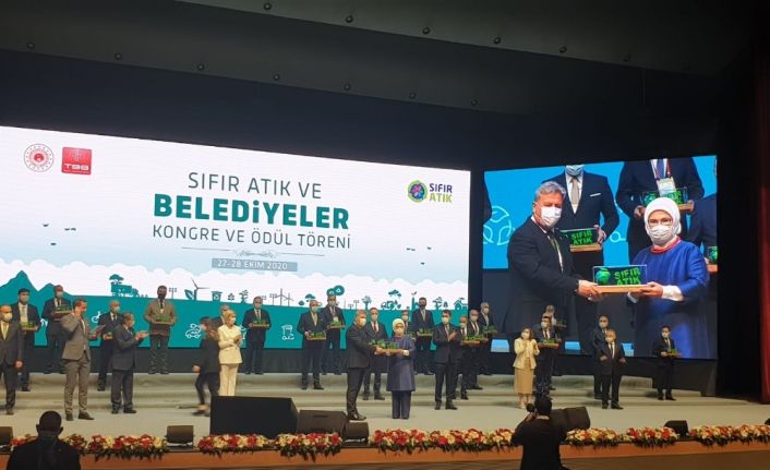 Emine Erdoğan ve Çevre ve Şehircilik Bakanı Murat Kurum’un katılımıyla düzenlenen törende, Melikgazi Belediyesi Sıfır Atık Projesi ile ödül aldı. Kazandıkları ödül için Melikgazi Belediyesi olarak oldukça gururlu ve mutlu olduklarını söyleyen Başkan Dr. Mustafa Palancıoğlu, “Bugün gururluyuz, çok mutluyuz. Melikgazi Belediyesi olarak birçok öncü projeye imza atıyoruz. Geri dönüşüm konusunda da belediye olarak oldukça başarılıyız. Melikgazi Belediyesi olarak ‘Hareketli Geri Dönüşüm Maketi/ Sıfır Atık Şehir Maketi’ sıfır atık projemizle yarışmaya katılmıştık. Kazanarak, ödül aldık. Geri dönüşüm tesisi ölçeğinde atıkların geri dönüşüm süreçlerinin modellenmesini yapacağız. Hazırladığımız proje kapsamındaki ödülümüzü Sayın Emine Erdoğan Hanımefendi’den alarak Melikgazi’mize getiriyoruz. Hayırlı olsun. Projemizde katı atıkların azaltılması, kaynağında ayrıştırılması, geri dönüşümü ve ekonomiye kazandırılması için çevre ve geri dönüşüm konusunda bilinci ve farkındalığı artırılmış kamuoyu oluşturmayı hedefliyoruz. Geri dönüşüm ve eğitim tesisimizde yer alan ve ülkemizde başka örneği bulunmayan eğitim ve sergi salonumuz ile eğitim çalışmalarını yürütüyoruz. Bu proje ile geri dönüşüm sergi salonumuzda geri dönüşüm tesisimizin modelleneceği hareketli bir maket oluşturulacak. Ülkemizde her atığın geri dönüşebildiği, döngüsel ekonomiyi sürdürülebilir kılmak için farkındalık oluşturmak” dedi. Proje ile amaçlarının ne olduğunu anlatan Başkan Dr. Palancıoğlu şunları söyledi;