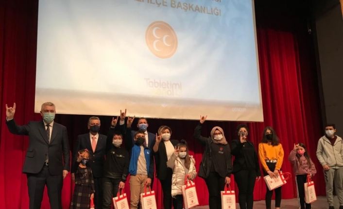 Milliyetçi Hareket Partisi (MHP) Melikgazi İlçe Başkanlığı tarafından 30 Ekim’de başlatılan ‘Tabletimi Sen Al’ kampanyası ile 300 öğrenciye tablet dağıtıldı.
