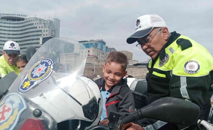 Uygulamalı olarak trafik eğitimi alan öğrenciler ise, polislerle hatıra fotoğrafı çekindi.