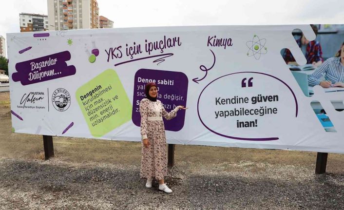 Talas Belediye Başkanı Mustafa Yalçın, yaklaşan Yüksek Öğretim Kurumları Sınavı (YKS) öncesi ilçenin çeşitli bölgelerinde yer alan açık hava reklam panolarında, sınava girecek adaylara hem başarılar diledi hem de çeşitli konularda ipuçları verdi.