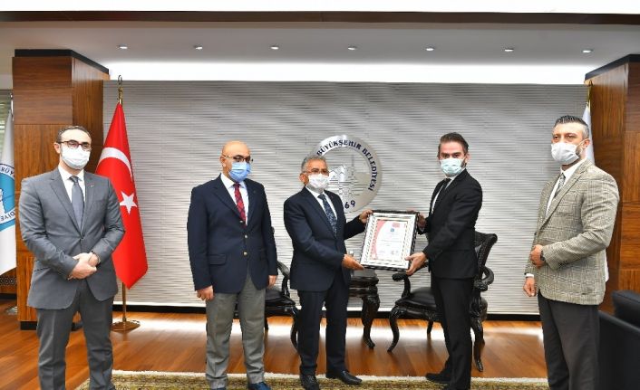 Bureau Veritas yetkilileri tarafından Başkan Büyükkılıç’a çiçek takdim edildi.