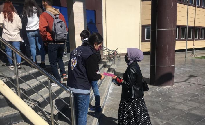 Aile İçi Şiddet büro Amirliği ekiplerince Erciyes Üniversitesi (ERÜ) yemekhaneler bölgesinde öğrencilere KADES broşürü ve maskesi dağıttı. Ekipler öğrencileri; şiddet uygulayan kişiler hakkında tedbirler, şiddete maruz kalınca nerelere başvurulabileceği, şiddete maruz kalınca yararlanılabilecek haklar ve KADES uygulaması hakkında bilgilendirdi.
