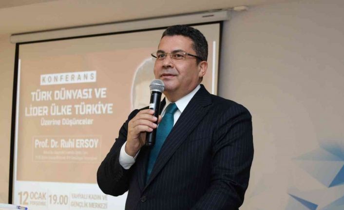 Prof. Dr. Ruhi Ersoy konuşmasında Türk tarihinin geçmişten bugüne önemli olaylarını anlattı. Ayrıca lider ülke olarak Türkiye, Türk dünyası ve milli kültür gibi birçok konuda önemli bilgiler verdi.