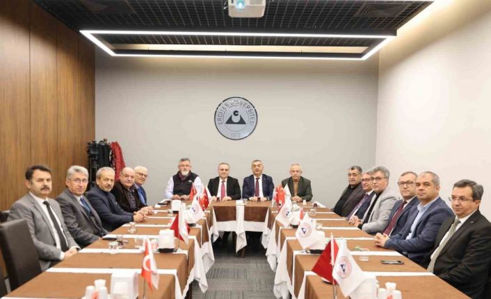 Toplantıda konuşan Rektör Prof. Dr. Fatih Altun, ERÜ’de tamamlanan ve devam eden projeler hakkında bilgi verdi. Proje ihalesi tamamlanan 800 yataklı Eğitim ve Araştırma Hastanesi hakkında bilgi veren Rektör Prof. Dr. Altun, yapılacak olan hastane binasının 190 bin 269 metrekare alanda 390 adet sismik izolatörlü 12 katlı bir bina olacağını söyledi. Konuşmasında projenin dört mevsim yeşil ve sulama gerektirmeyen çatı örtüsü ve güneş panelleri ile kendi tükettiği elektriği de üreteceğinin altını çizen Rektör Prof. Dr. Altun, 816 araçlık kapalı 340 araçlık da açık otoparka sahip bir bina olacağını sözlerine ekledi. ERÜ’de tamamlanan projeler hakkında da bilgi veren Rektör Prof. Dr. Altun, Diş Hekimliği Fakültesi Diş Hastanesi’nin tamamlandığını ve önümüzdeki günlerde açılışının gerçekleştirerek, 399 diş ünit sayısı ile Türkiye’nin en büyük diş hastanesi olacağını belirtti.