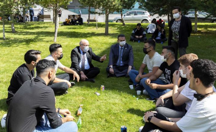 Kayseri Üniversitesi (KAYÜ) Rektörü Prof. Dr. Kurtuluş Karamustafa, kampüs bahçesinde öğrencilerle bir araya geldi. Kampüste öğrencilerle sohbet eden Rektör Karamustafa, öğrencilerin beklentilerini dinledi.