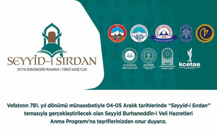 Kayseri Büyükşehir Belediyesi, Kayseri Valiliği ve Birlik Vakfı iş birliğinde Seyyid Burhaneddin’in 781. vefat yıl dönümü dolayısıyla 4-5 Aralık tarihlerinde ‘Seyyid-i Sırdan’ temasıyla Anma Programı düzenlenecek.