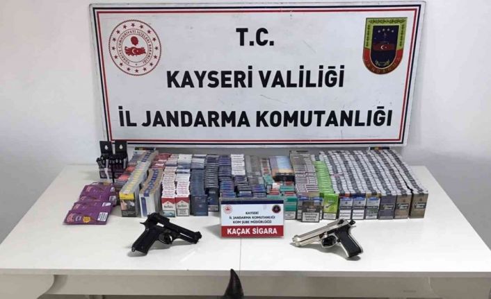 Kayseri İl Jandarma Komutanlığı KOM Şube Müdürlüğü, JASAT ve Melikgazi Gesi Jandarma Karakol Komutanlığı ekipleri tarafından kaçak/sahte alkol ve bandrolsüz sigara satışı yapan şahıslara yönelik istihbari çalışma başlatıldı. Yapılan çalışmalarda A.G.’nin ikamet ve iş yerinde kaçak/sahte alkol ve bandrolsüz sigara satışı yaptığı bilgisi üzerine tütün tespit köpeği Yolcu ile birlikte arama yapan ekipler, çeşitli markalara ait 745 paket kaçak bandrolsüz sigara ve 2 adet ruhsatsız tabanca buldu.