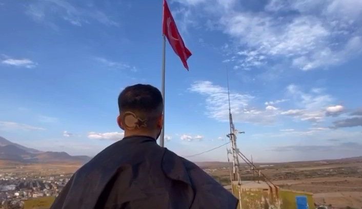 Havada, suda ve dağda yaptığı tıraşlarla dikkat çeken Kayserili kuaför Faruk Kafkas, 29 Ekim Cumhuriyet Bayramı’na özel ay yıldızlı tıraş yaptı.