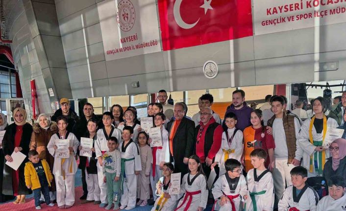 Talas Belediyesi Sporcu Fabrikası’nda tekvando kursu alan sporcular, kuşak taktı.
