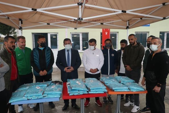 Gençlik ve Spor İl Müdürü Ali İhsan Kabakcı, açıklamanın ardından sporculara spor malzemelerini verdi.