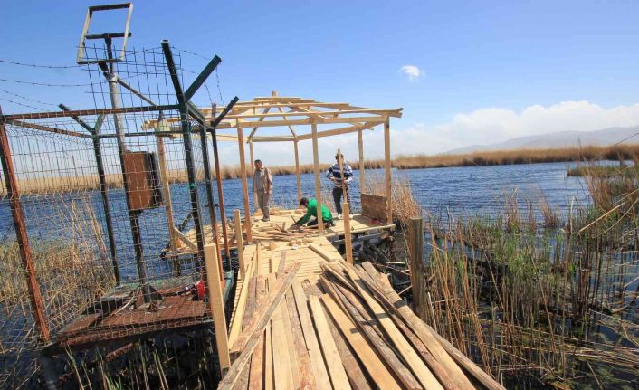 Milli park ilan edilen Sultan Sazlığı’nda geçtiğimiz günlerde çıkan yangında zarar gören alanlar tamir ediliyor.