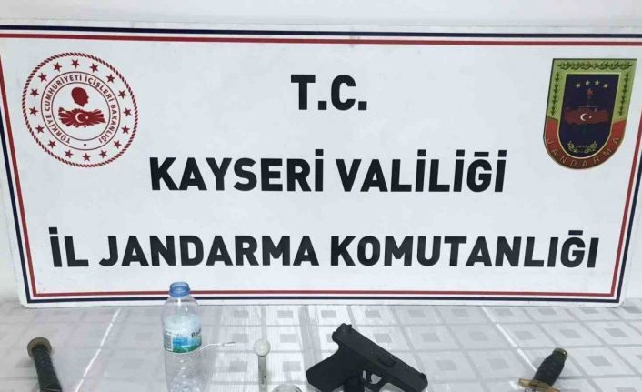 Kayseri İl Jandarma Komutanlığı İstihbarat Şube Müdürlüğü ve Kocasinan İlçe Jandarma Komutanlığı tarafından istihbari çalışma başlatıldı. Yapılan çalışmalar sonucunda şüpheli A.T.’nin ikametinde yapılan aramalarda 10 gram uyuşturucu madde, 1 adet tabanca, 1 adet şarjör, 2 adet mermi, 2 adet kasatura ve uyuşturucu madde kullanma aparatı bulundu.