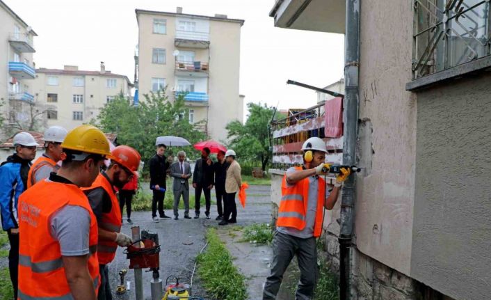 Talas Belediyesi, ilçede belirlenen kentsel dönüşüm bölgelerinden karot örnekleri alarak riskli yapıları tespit etmeye başladı.