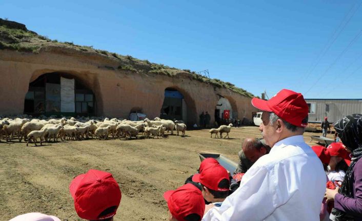 Talas Belediyesi tarafından düzenlenen kuzu katım programında Fatma Mustafa Hasçalık İlkokulu öğrencileri Başakpınar Mahallesi’ndeki yetiştirici Murat Sivritaş’ın ağılına geldi.