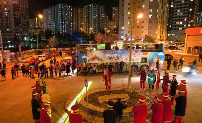 Baharın müjdecisi Nevruz etkinlikleri, Talas’ta renkli görüntülere sahne oldu. Talas Belediyesi’nin, mehter takımı ve üstü açık gezi otobüsüyle düzenlediği Nevruz organizasyonu soğuk havaya rağmen vatandaşlardan yoğun ilgi gördü.