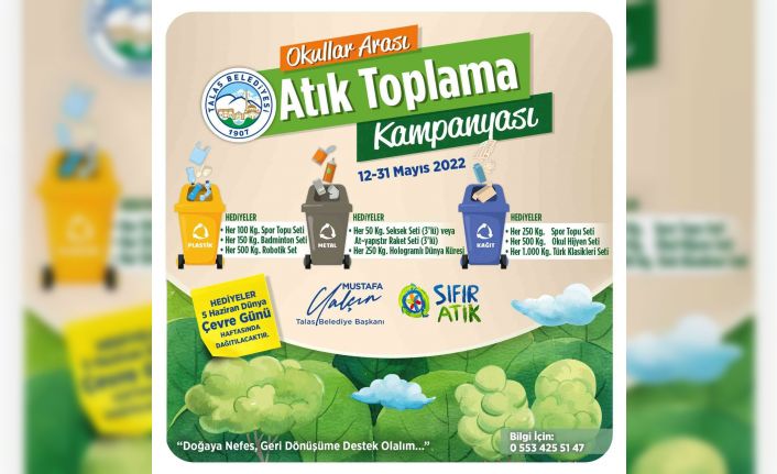 Talas Belediyesi tarafından ’Doğaya Nefes, Geri Dönüşüme Destek Olalım’ sloganıyla okullar arası atık toplama kampanyası başlatıldı.