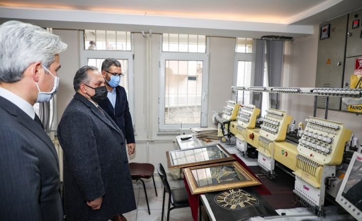 Merkezi gezen Başkan Yalçın ve beraberindekiler burada kurslar hakkında bilgi alırken, kursiyerlerle de sohbet etti.