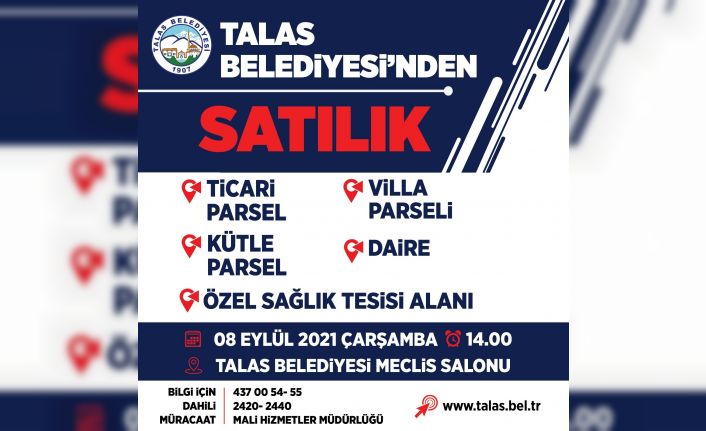 Ayrıca www.talas.bel.tr/duyurular adresinden hem bilgi almak hem de satılık taşınmazların videosunu incelemek mümkün.