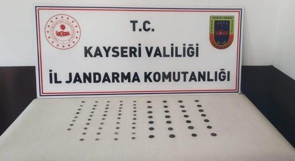 Kayseri İl Jandarma Komutanlığı ekipleri tarafından yapılan asayiş faaliyetlerinde, durumundan şüphelenilen bir şahsın üst aramasında 76 adet bronz ve gümüş sikke çıktı.